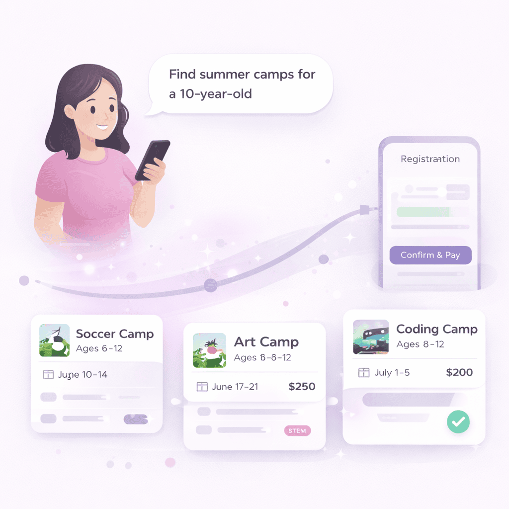 We make planning and attending kids activities easy by organizing the fragmented world of care and enrichment programs into AI-ready inventory that enables AI apps, marketplaces, and platforms to power real-time discovery and enrollment.
